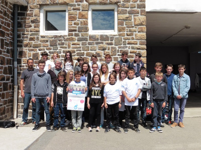 Les élèves de la classe de 6e A du collège François Charles se sont rendus à l’école primaire de Plouézoc’h, à l’invitation des CM2 et de leur professeur Madame Jaffrelot, accompagnés par leur professeur de français, Madame Mouchel. Tout au long de l’année scolaire, ces deux classes s’étaient engagées dans le prix des Incorruptibles et avaient lu les 7 livres sélectionnés. Pour couronner et fêter leur dynamisme, un défi lecture a été organisé, et des équipes mêlant les deux classes se sont affrontées dans la bonne humeur. Les résultats sont à saluer, ainsi que l’ambiance joyeuse qui a régné durant l’épreuve. A reconduire l’an prochain très probablement !