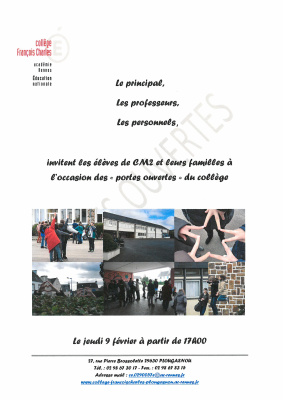 Soirée « portes ouvertes » du collège le jeudi 09 février à partir de 17h00.