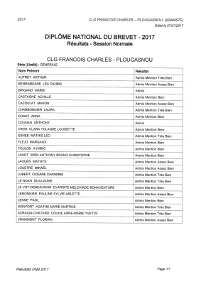 La cérémonie de remise du diplôme du brevet 2016 s’est déroulée dans une ambiance chaleureuse et bon enfant ce mercredi 05 octobre. Nous avons eu le plaisir de retrouver presque tous nos élèves (17 sur 22 reçus au brevet) accompagnés pour la plupart par leurs parents. M. Kerbiriou, Mme Naour, Mme Bekhtari et Mme Mouchel étaient également présents, la commune de Plougasnou était représentée par M. Choquer et Mme Le Dru et le conseil départemental par M. Lostanlen. Un grand merci à tous pour ce moment important dans la vie de nos collégiens devenus lycéens. Bon vent à eux !!