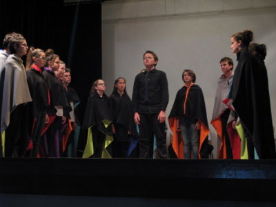 Lundi 12 mai à 18 heures a eu lieu à la salle des fêtes la soirée théâtre des élèves du collège de Plougasnou. Les élèves de l’option LCA (latin et grec) avaient mis en scène une adaptation de la comédie de Plaute « Une affaire d’ânes », et les élèves des deux classes de 4e s’étaient lancés depuis plusieurs mois, dans le cadre de l’EPI LCA, dans la mise en scène d’une version raccourcie d’Antigone, célèbre tragédie de Sophocle. Ils étaient encadrés par leurs professeurs, Mme Bekhtari, qui a travaillé les danses et les déplacements du choeur, Mme Mouchel, qui a impulsé la mise en scène et étudié la pièce avec les élèves, ainsi que d’Antoine Allais, surveillant, qui a permis de donner un relief particulier à cette représentation par la présence de musique et notamment de percussions. Les spectateurs sont venus nombreux et ont été enthousiasmés par ce spectacle qui s’est révélé d’un très bon niveau, et a permis de constater les qualités d’acteurs, l’engagement et le sérieux des élèves. Une belle soirée axée sur un théâtre antique qui reste très actuel : à reconduire l’an prochain pour la joie de tous !