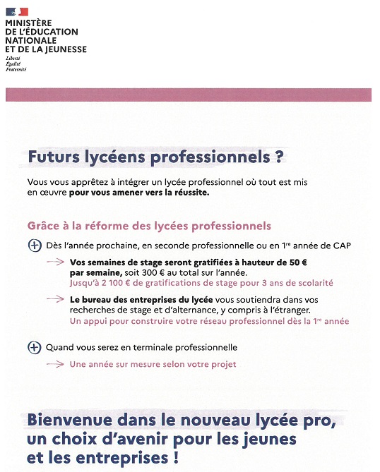 Fiche de présentation des métiers et filières proposées dans le bassin du Finistère Nord (avec liens vers vidéos de présentation) et schéma liaison collège/lycée :