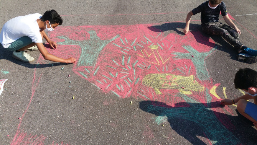Séance de réalisation de « Dreamings » : un travail mené en cours d’anglais par Mme Lefort avec la classe de 4e. Les Dreamings sont l’interprétation de légendes aborigènes ; chaque signe a un sens et permet à la communauté de comprendre la légende.