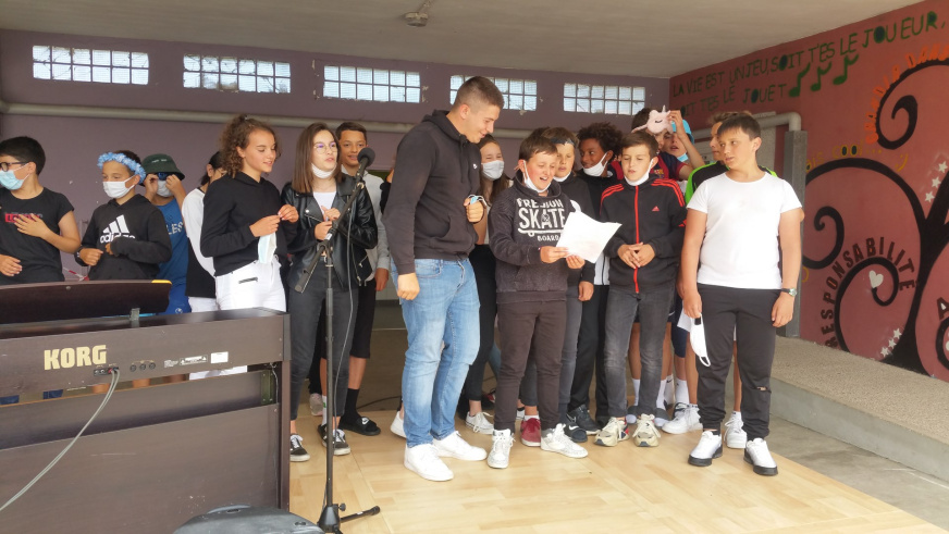 Le podium, installé par l’équipe des services techniques de la ville de Plougasnou, a permis aux élèves d’exprimer leurs talents et leur bonne humeur !